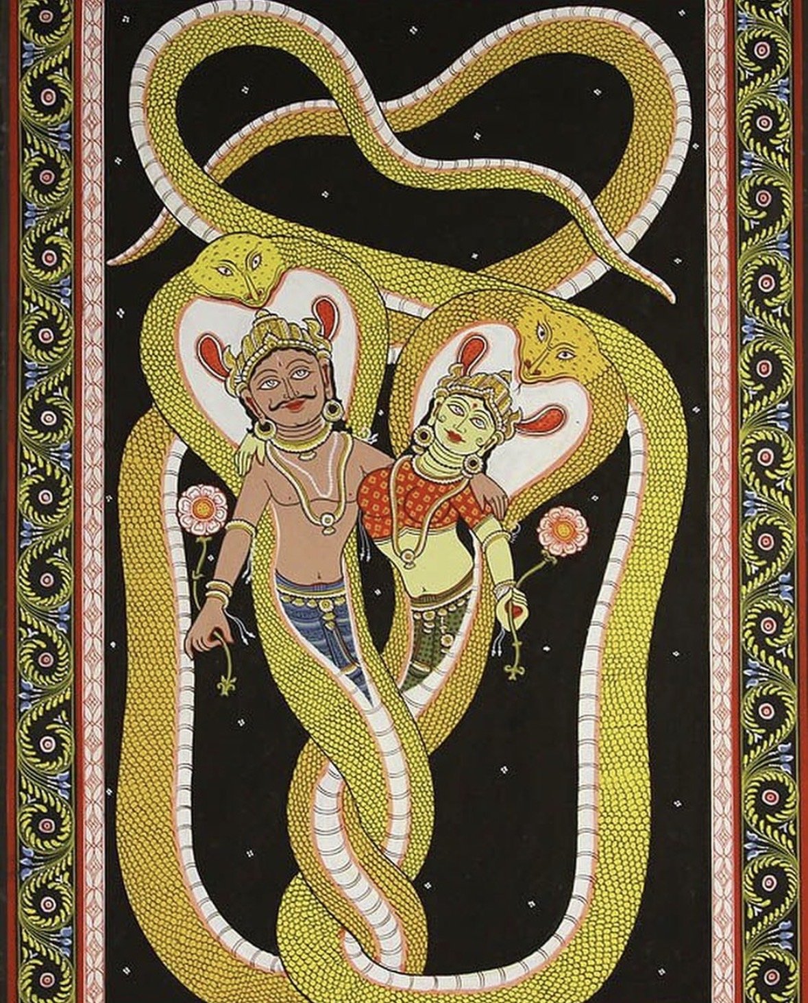 Counted among the eleven Rudras—forms of Śiva—Ahirbudhnya is linked to fertility, Kuṇḍalinī energy, and the subconscious forces of Nature. His energy is both creative and destructive, reflecting the profound alchemy of transformation and spiritual awakening that unfolds in the hidden depths.