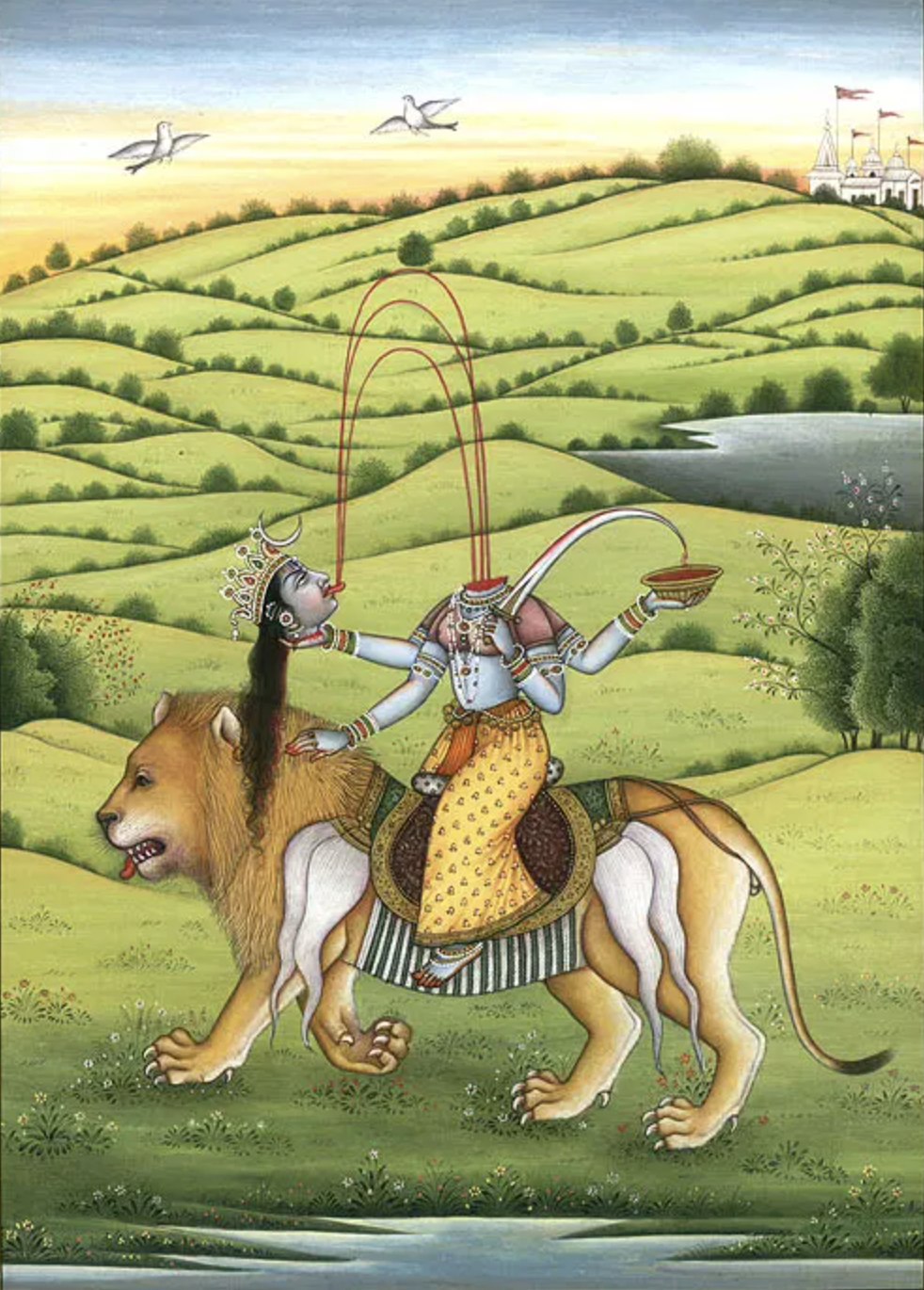 Mahāvidyā Chinnamastā Riding Lion by Kailash Raj